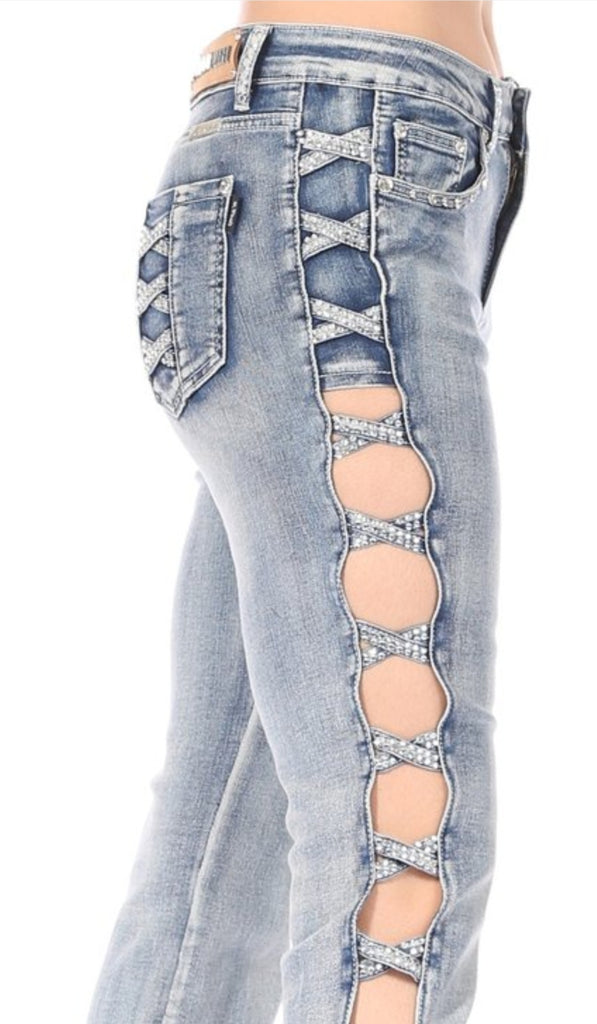 Super sexy rhinestone criss cross peekaboo open sides. Plenty of stretch and fit true.