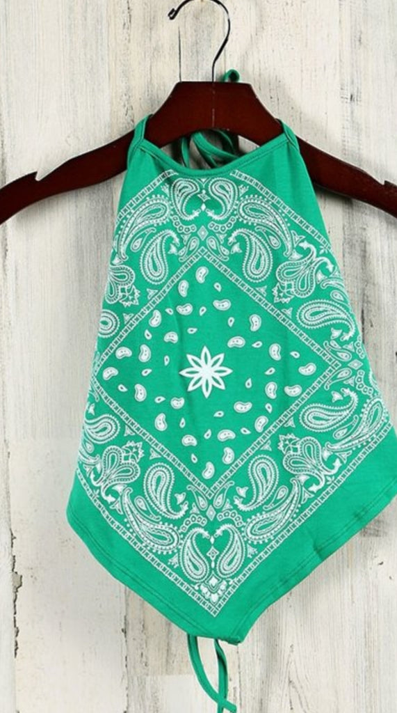 BANDANA PIECE PRINT HALTER KNIT TOP.