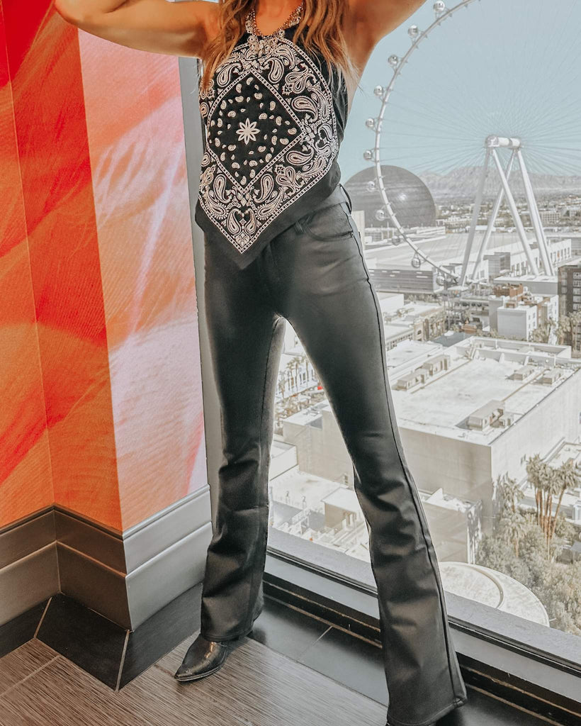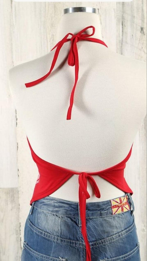 BANDANA PIECE PRINT HALTER KNIT TOP.